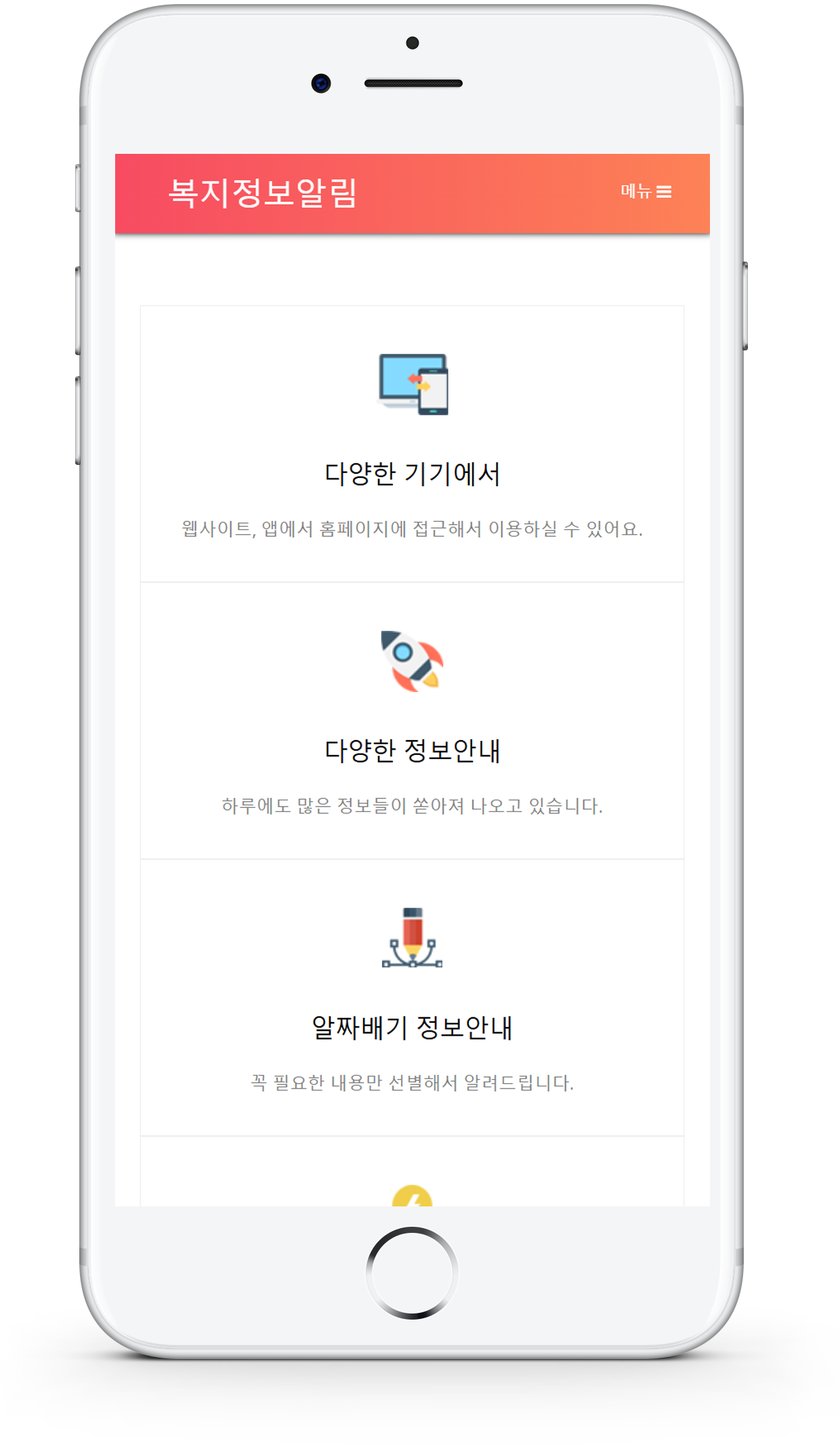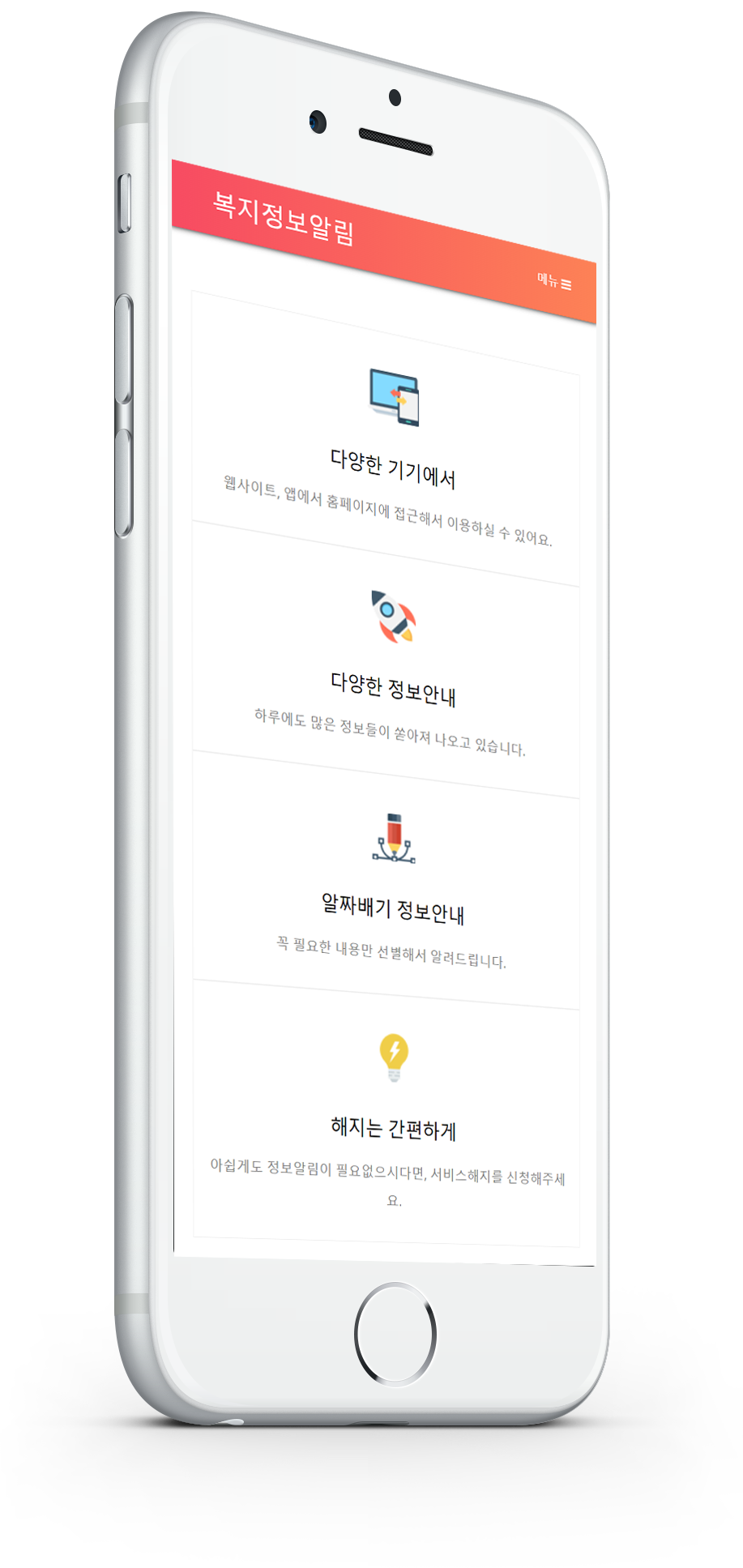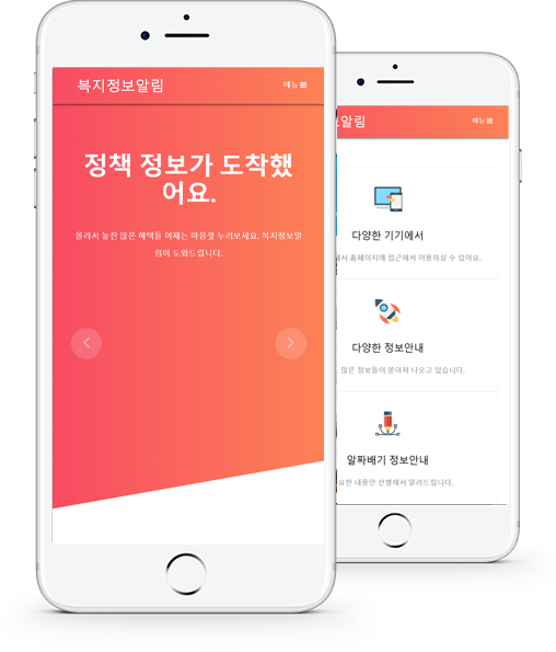 놓치고 있던 정책정보가 너무도 많은걸 알고 계세요? 복지정보알림에서는 정책 만료전에 알려드립니다. 알짜배기 정보를 놓치지 마세요